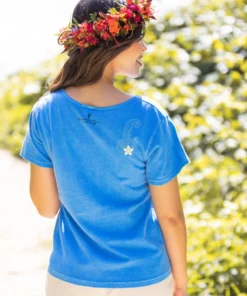 The lush and colorful beauty of Hawaii’s tropical foliage makes for a striking fashion statement. It is especially eye-catching here thanks to the yellow and purple hand painted, tribal-style print that perfectly contrasts this ocean blue T that gets its color from our Blue Hawaii specialty dyeing process. As the name implies, Mini Ts like this one are cut a little shorter for a fun, flirty look but remain extremely comfortable thanks to the relaxed fit. Its dyed using our specialty Blue Hawaii dyeing process and made from 100% cotton that is ring-spun then combed to remove impurities, this fabric is luxuriously soft and lightweight yet incredibly strong. We only use environmentally friendly water-based inks that penetrate the material’s fiber resulting in more vibrant colors, softer feel and artwork that doesn’t crack or peel. Plus, it is proudly printed in the United States for quality you can see and designs that stand the test of time.